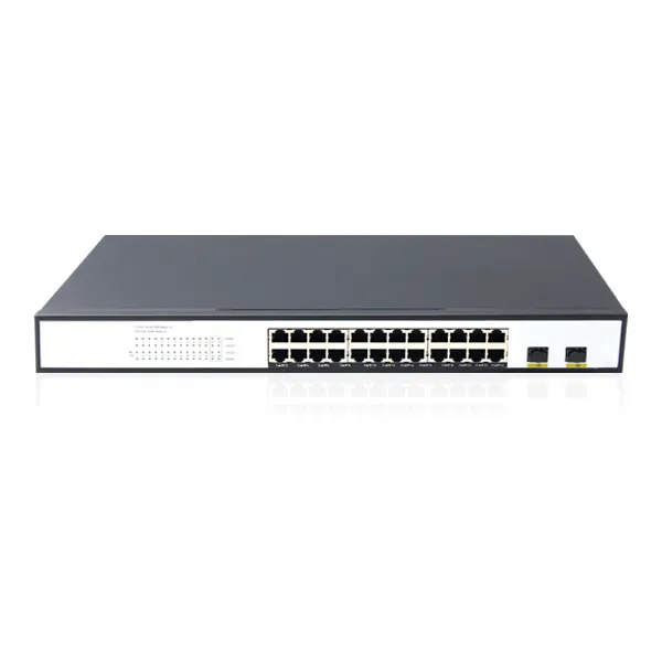 The MAG6242 gigabit network switch with 2 optical and 24 electrical ports has 24 Gigabit 10/100/1000M network ports and 2 Gigabit SFP optical slots. It has 64Gbps backplane bandwidth and 42Mpps packet transfer performance. MAG6242 gigabit network switch provides simple and convenient installation and maintenance methods and rich business features to help users build safe, reliable, and high-performance networks. It can be widely used in network monitoring and wireless coverage scenarios such as small and medium-sized enterprises, Internet cafes, hotels, factories, parks, and schools.