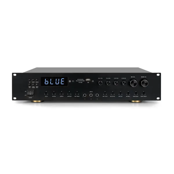MK4135 4-Channel Stereo Conference Amplifier supports 5 MIC inputs and 3 multimedia inputs, 2 recording outputs and 8 speaker interfaces of amplifier output, with MP3 & Bluetooth function, which is applicable to multifunctional classrooms, ordinary classrooms, and small meeting rooms, with full Chinese menu interface, easy to use for domestic users, easy to install and debug, and with clear sound amplification.