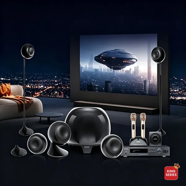 The King Series 5.1 Channel Premium Home Theater & Karaoke System is built for high-quality home entertainment with both cinematic audio and karaoke functionality. It delivers stable surround sound performance, enhanced bass response, and clear vocal output. With flexible connectivity and smart integration, it fits seamlessly into modern home environments.