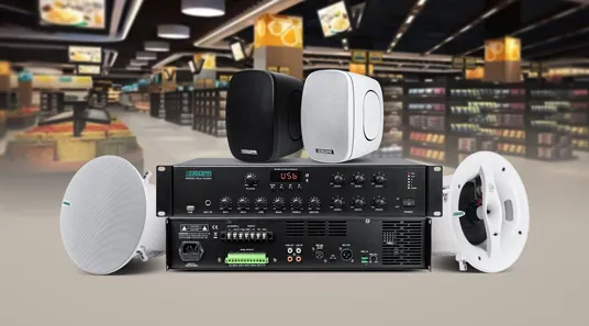 ● Entrance / Checkout Areas: Wall-mounted speakers or horn speakers, delivering high clarity and strong sound projection.