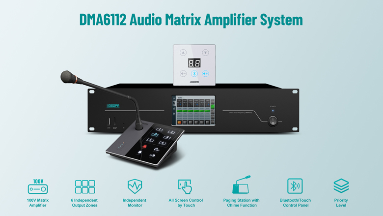 This 120W / 240W amplifier system features a sleek design, a 4.3-inch touchscreen, USB, radio and Bluetooth playback, enabling audio playback, broadcasting, and emergency notifications for enhanced convenience and user experience.