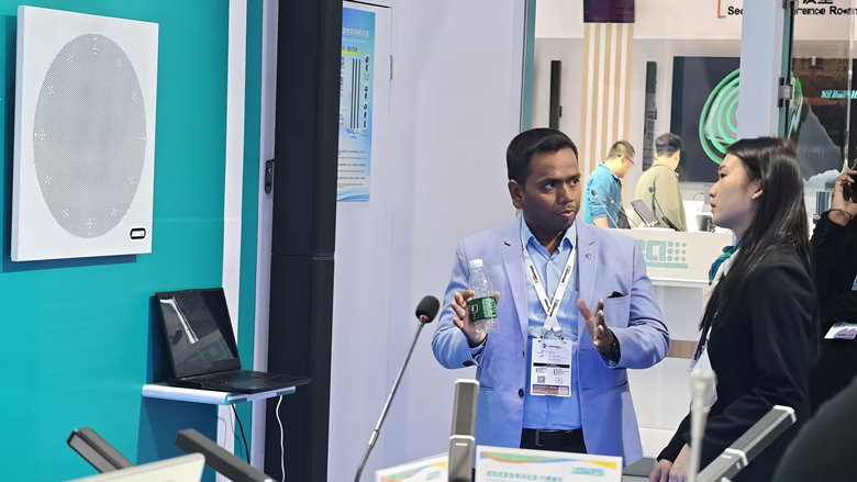 Among the highlights, the newly launched D7702 ceiling conference microphone stood out for its natural ceiling-mounted voice capture, while the digital beam steering column loudspeaker delivered precise sound control, enhancing overall conference audio clarity and performance.