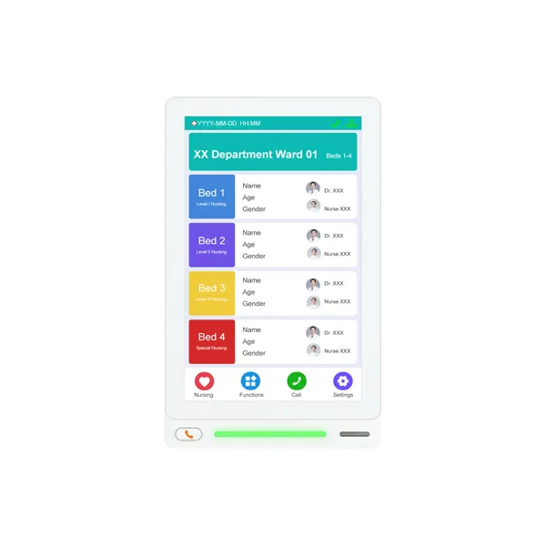 Equipped with a 10-inch or 15.6-inch high-definition touchscreen, the device clearly displays room numbers, patient information, nursing status, and other relevant data. Medical staff and visitors can easily view ward information and initiate communication with the nurse station when necessary.
