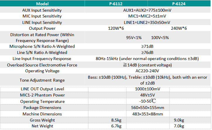 The P-6112 P-6124 P-60M P-60W multi-function matrix public address system is a newly designed and highly integrated audio matrix host system. This new system not only features an 8 × 6 signal matrix but also includes multimedia playback capabilities. It incorporates a six-channel output design that supports 100V constant voltage output. Additionally, it supports the P-60M remote paging microphone with a glass panel touch button design and the P-60W Bluetooth touch panel, both as expansion peripherals. The multi-function matrix PA hosts P-6112 and P-6124 are specified at 6 × 120W and 6 × 240W, respectively, both designed with a 2U chassis. The high degree of integration in these devices helps save space and reduce wiring complexity. They come with a comprehensive set of logical interfaces and a well-defined priority system, making them suitable for most small to medium-sized broadcast system applications. Additionally, they can be integrated with other systems for enhanced functionality.