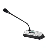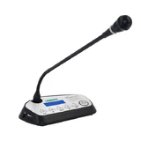 D6221 Desktop Chairman Speech/Vote Unit provides functions such as speech, vote, check-in and self-checking. This chairman speaker adopt goose-neck microphone, built-in magnetic loudspeaker, headphone jack, and also provide power-on indicating light and button and light indicators. In VOICE mode, it can realize voice controller on/off function. The chairman loudspeaker has high speed digital processors and HiFi audio circuits, and can indicate the work status of LCD screen. Chairman unit has the priority to deliver speeches and the authority to approve speech application from delegates. It can call for voting and is free from limitations on number of spokesman. It has the full authority to take control on the discipline at the conference site; in a D62 series digital conference system, it allows 2 chairman units at a same time, and the position of chairman units is free from position restrictions. Conference units are passive equipment and are powered by the controllers. The input voltage is 24V; they are easy to use, with clear voice and easy to install with fashionable appearance.